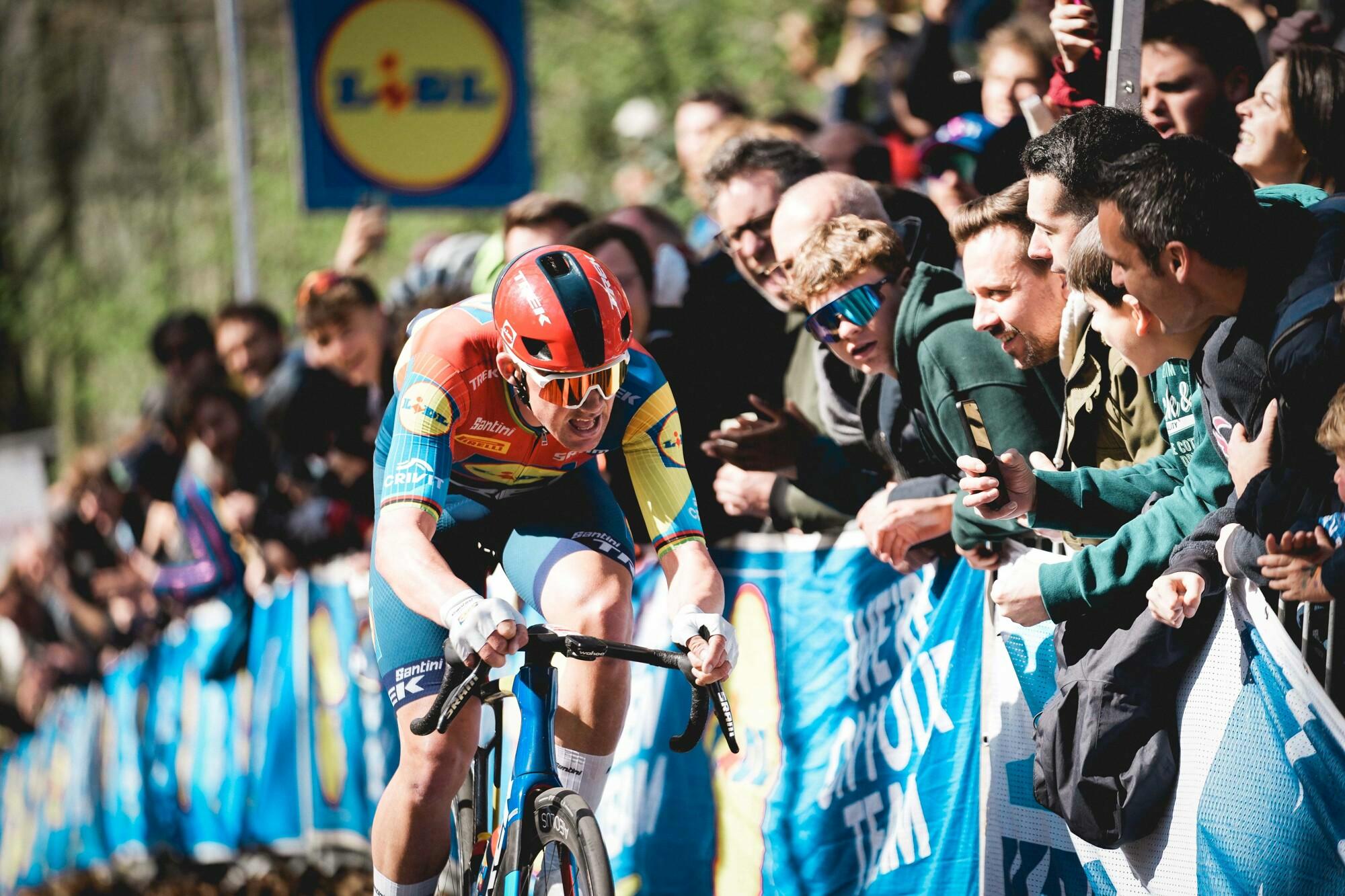 Lors de la deuxième ascension du Kemmelberg, Campenaerts a mis la pression sur le groupe, ce à quoi Pedersen a répondu par une accélération. À 55 kilomètres de l’arrivée, le Danois a atteint le sommet en solitaire et s'est lancé dans une longue chevauchée vers Wevelgem. Dans le peloton, l'écart avec Mads Pedersen s'est creusé de plus en plus. Lors de la troisième et dernière ascension du Kemmelberg, il avait déjà deux minutes d'avance sur le peloton. Philipsen a encore montré qu'il avait de bonnes jambes, mais cela n'a pas suffi pour rattraper le Danois.